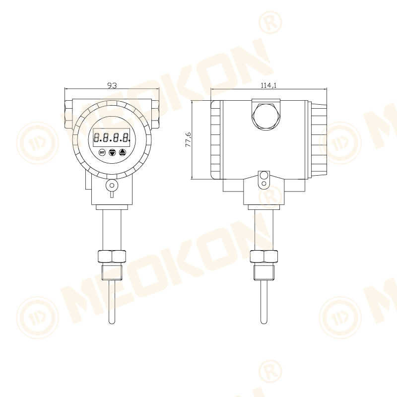 本產(chǎn)品可以測量水、油、空氣等對(duì)不銹鋼無腐蝕的介質(zhì),配置進(jìn)口的高精度PT100作為測量溫度的元件,溫度探頭接觸插入測量介質(zhì),電路進(jìn)行0-60℃使用環(huán)境溫度補(bǔ)償。