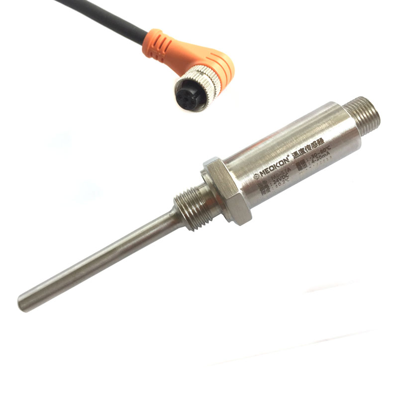 該溫度變送器產(chǎn)品的探頭及外殼采用316L不銹鋼,結(jié)構(gòu)采用激光焊接工藝,連接線采用IP65防水航插出線,極大的保證產(chǎn)品的長期穩(wěn)定型和可靠性。